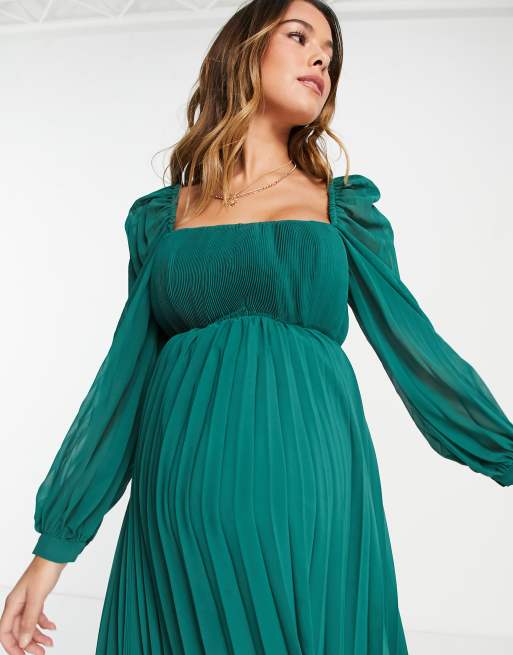 ASOS DESIGN Maternity square neck pleated midi skater dress in forest green Very well made.