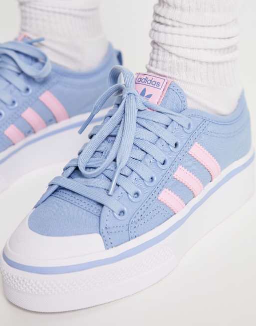 adidas Originals Nizza platform sneakers in pale blue with pink stripes Very well made.