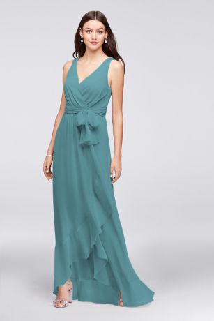 RUFFLE TRIM CHIFFON FAUX WRAP Bridesmaid Dress Davids Bridal Very well made.