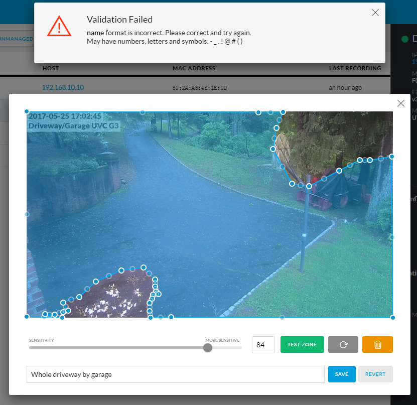Problem saving Motion Detection zone after editing Ubiquiti Very well made.