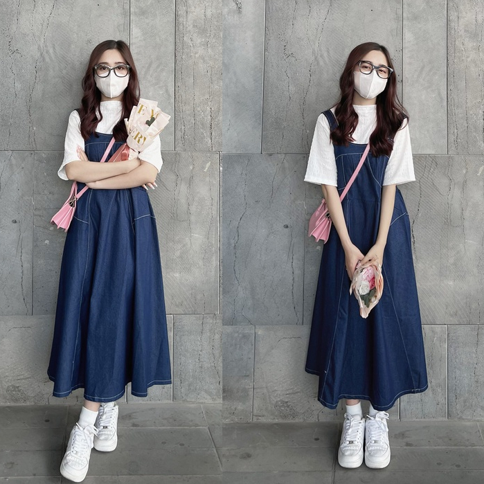 Blue denim Overalls With Long Border Real Photo Shopee Singapore Very well made.