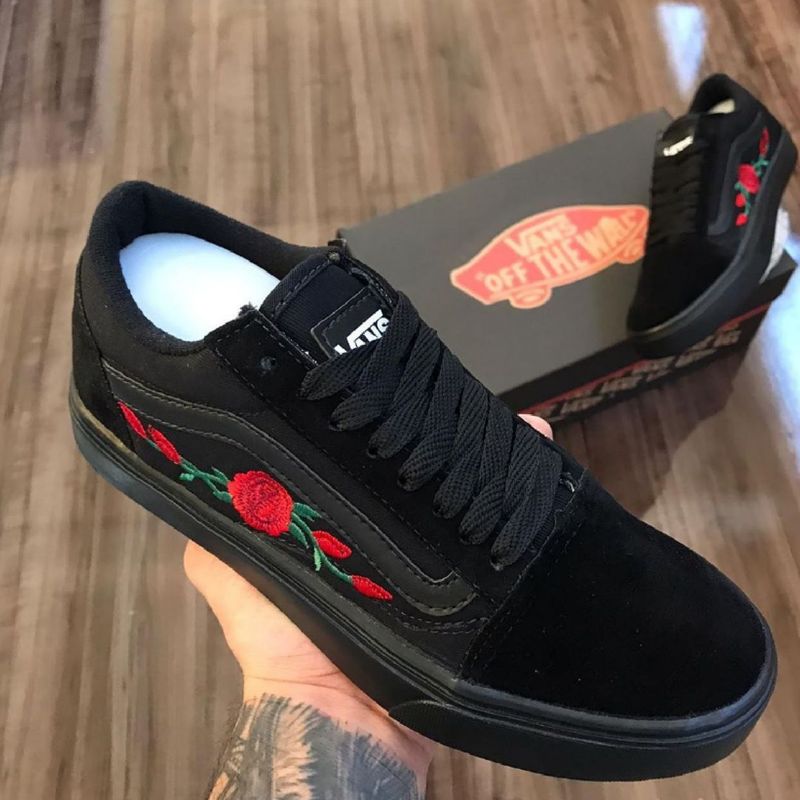 Vans Preto com Flores Vermelhas T nis Feminino Vans Nunca Usado Very well made.