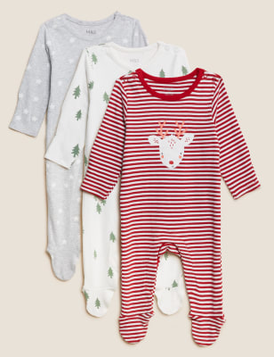3pk Cotton Rich Christmas Sleepsuits 0 3 Yrs M S BO Very well made.