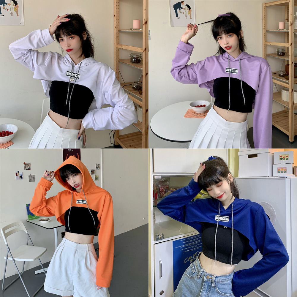Ready stock 7 colors crop top long sleeve short hooded sweater women s high waist street dance long sleeve top Very well made.